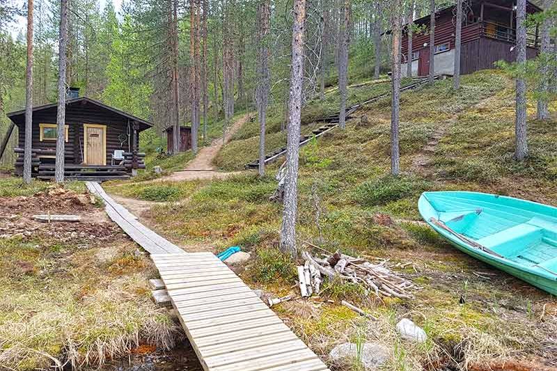 Öllörimökki on kesäisin käytössä oleva pyöröhirsimökki. Rinnemökki ja erillinen sauna sijaitsevat Öllörijärven rannalla, joista voi ihailla auringonlaskua. Laiturilta voi pulahtaa kristallinkirkaan Öllörin veteen. Parkkipaikalta saunalle on noin 100 porrasta, joten suosittelemme mökkiä vain hyväkuntoiselle. Käytettävissä on oma ranta ja vene. Kansallispuistoon on matkaa kävellen tai pyörällä noin 2,5 kilometriä. Suosittelemme mökkiä 3 hengelle.