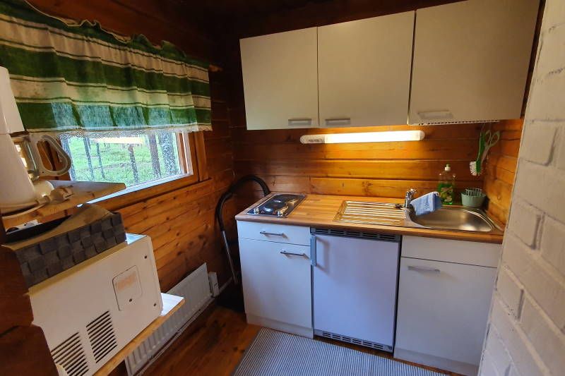 Mökissä on sähköt, wc-suihku ja puulämmitteinen sauna. Tuvassa on kaksi runkopatjaa ja pieni keittiö.